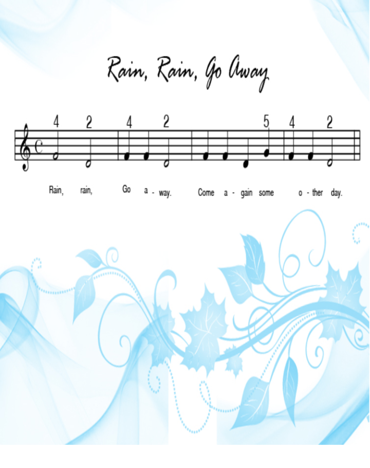 As with all things, when you begin to learn the piano, you must start with the most basic concepts, and that means reading music. It’s easier than you might think, especially if you start out with very simple songs. The easiest way to get started is by using the concepts that your music teachers have taught you. The lines on the Treble scale are: E, G, B, D, F from bottom to top. To remember these letters, you only have to remember, “Every Good Boy Does Fine.” The spaces between the lines are F, A, C, E and can simply be remembered as “FACE.” The printable piano music Rain, Rain, Go Away is the perfect starter song because it only involves three notes: F, D, and G. Label your piano keys, and you’re ready to master this simple, yet catchy song!