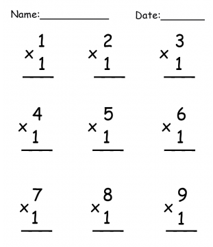 As they say, start at the beginning! When it comes to multiplication, that means starting with the free printable One (1) times table. We have the perfect worksheet for you to introduce this new math skill to your students. The top numbers of the multiplication problems number 1 through 9. All of these numbers are multiplied by one so students can easily see that a number multiplied by one is that number. The worksheet is very easy to complete because it’s not intimidating or overwhelming. It consists of only nine problems with large numbers and plenty of whitespace for working. Multiplication is the foundation for all other types of math that follow, so it is important that students grasp these concepts early on to avoid falling behind. Providing plenty of practice multiplication problems ensures that they continue honing their skills. These worksheets can be completed in the classroom or sent home with the students as homework to complete with help from their parents. Encourage parents to use real life objects whenever possible because young children master multiplication better with visual aids.